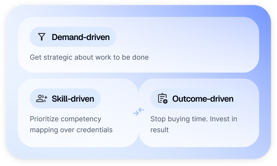 Driving the convergence of contingent labor and services (SOWs) into a single, fully integrated talent ecosystem. Breaking down silos. Creating efficient pathways to access all external workforce capabilities from staff augmentation to outcome-based partnerships. Software so intuitive your people will actually use – and love it.